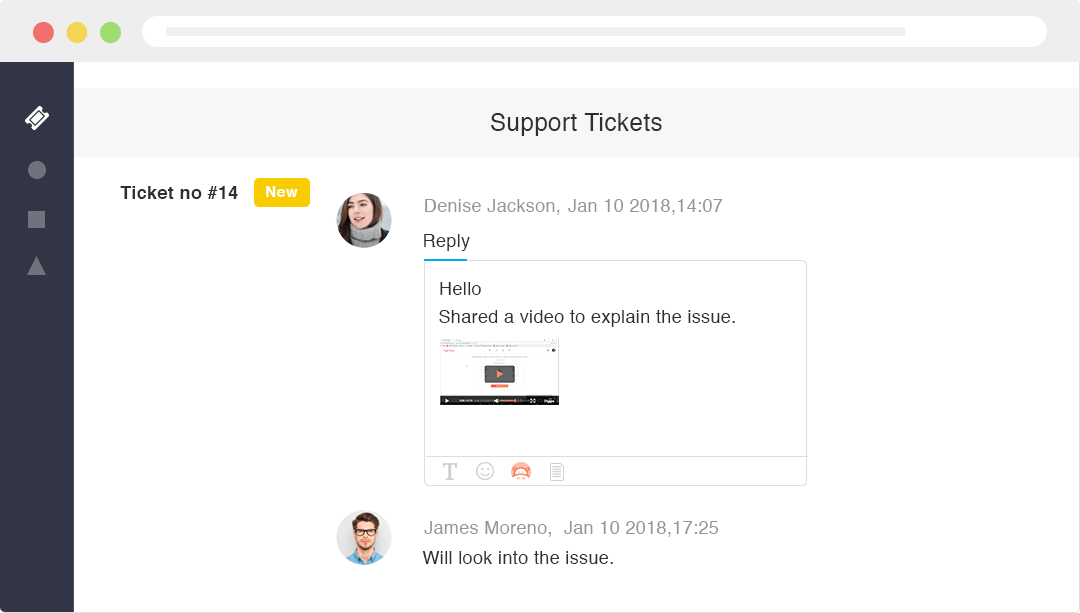 Finally, you’ll be redirected to the Ticket page and you’ll notice the Hippo Video component.