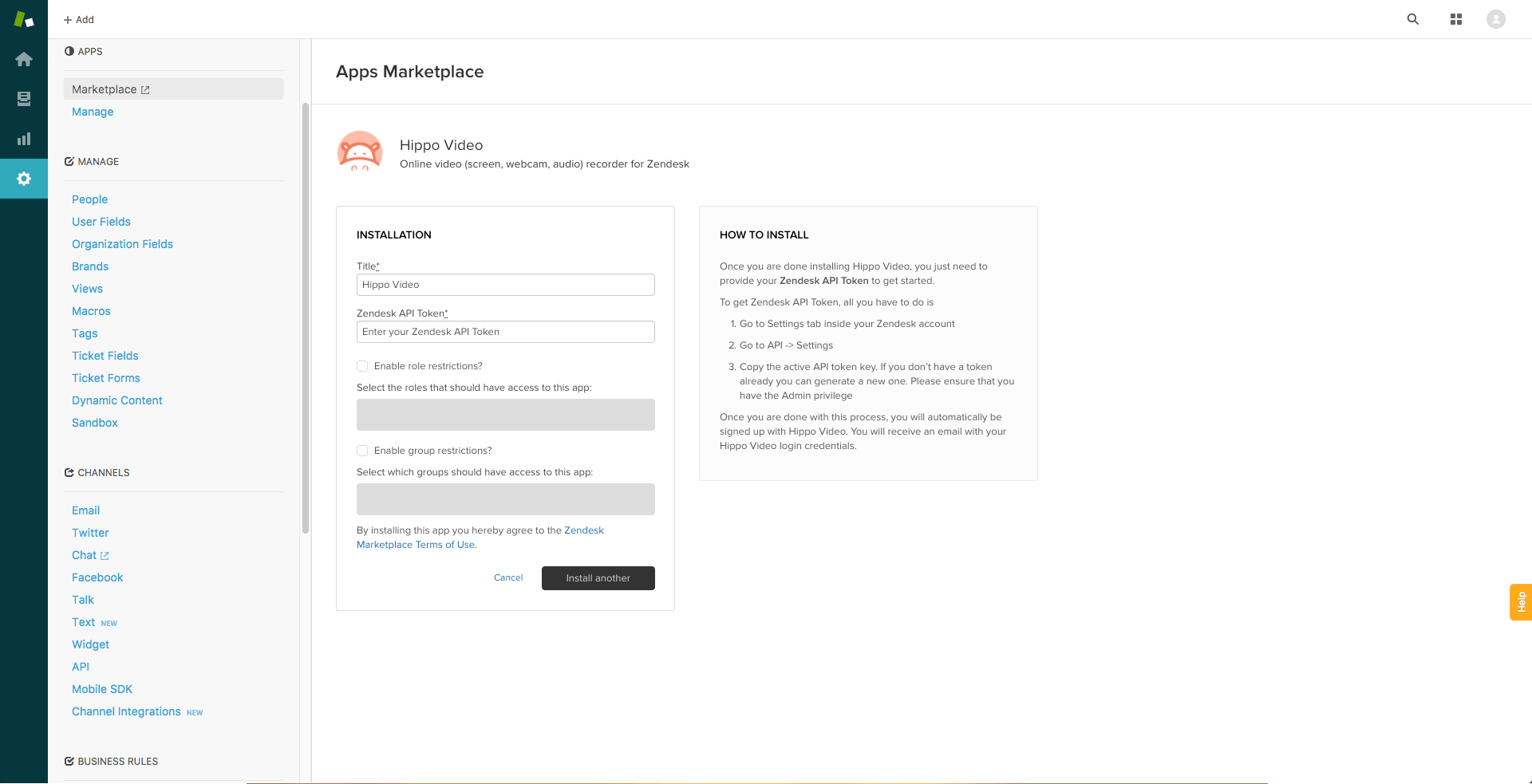 You can install Hippo Video for ‘Admins’, ‘All users’ or ‘Specific profiles’.